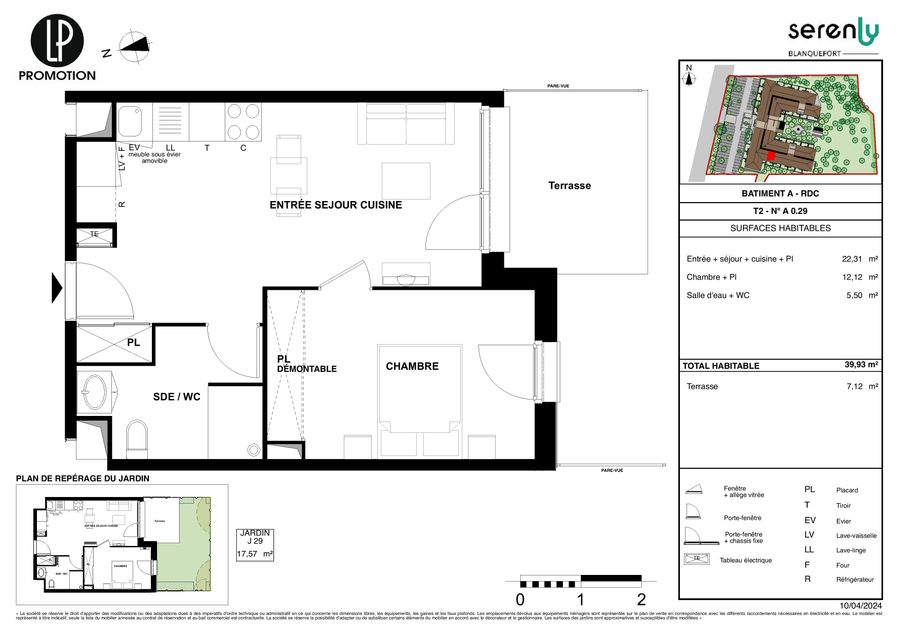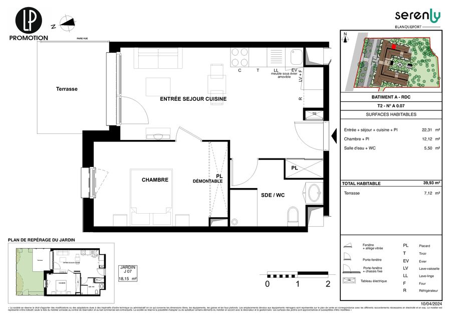 39.93 m² | RDC | 4 528 € | 180 800 € | 635 € | Terrasse 7.12 m²