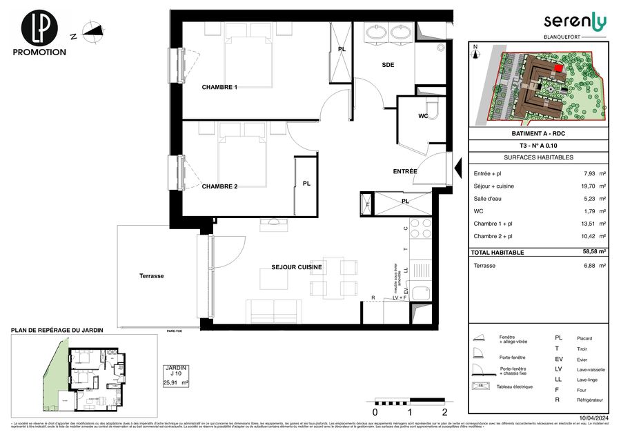 58.58 m² | RDC | 3 986 € | 233 500 € | 628.33 € | Terrasse 6.88 m²