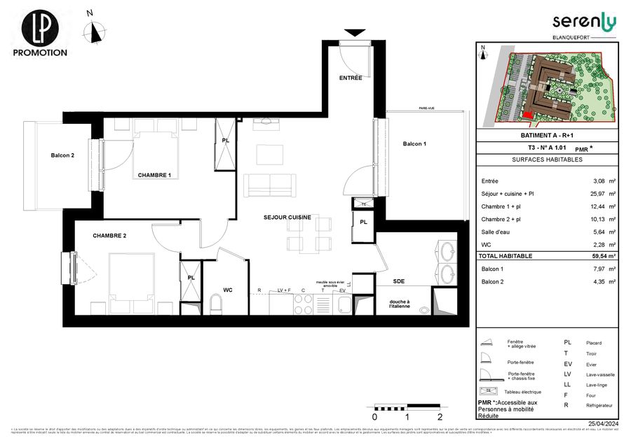59.54 m² | 1er | 4 080 € | 242 900 € | 855 € | 12.32 m² |