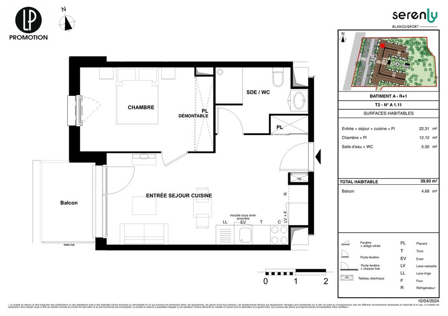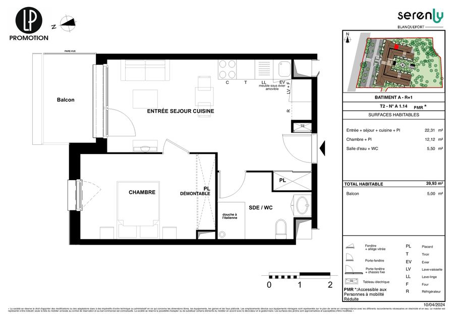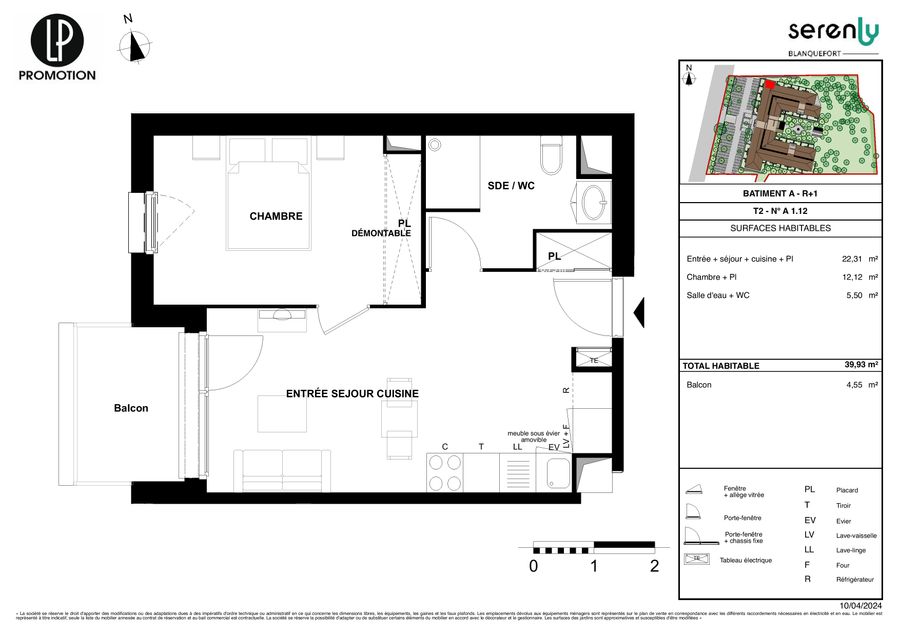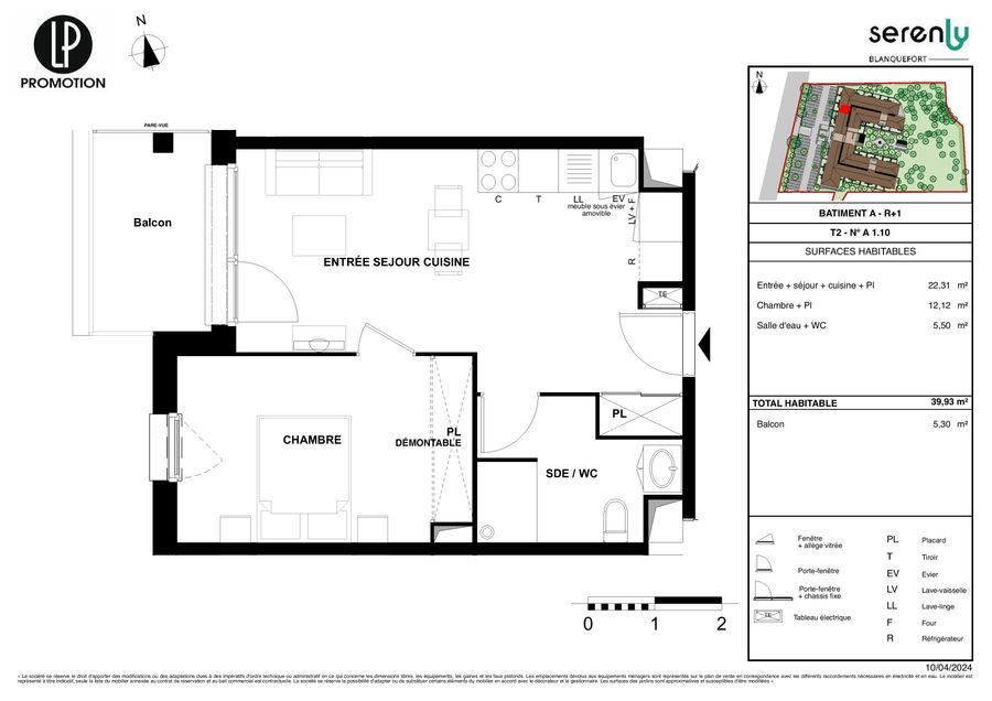 | A110 | T2 | 39.93 m² | 1er | 4 540 € | 181 300 € | 636.67 € | 5.30 m² |