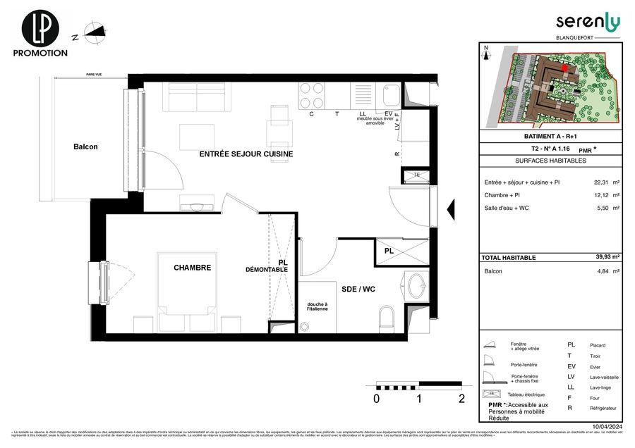 39.93 m² | 1er | 4 586 € | 183 100 € | 643.33 € | 4.84 m² |