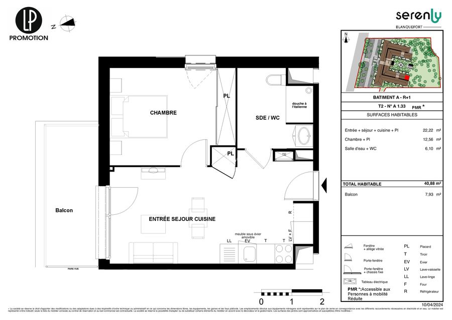 40.88 m² | 1er | 4 593 € | 195 600 € | 689.17 € | 12.84 m² |