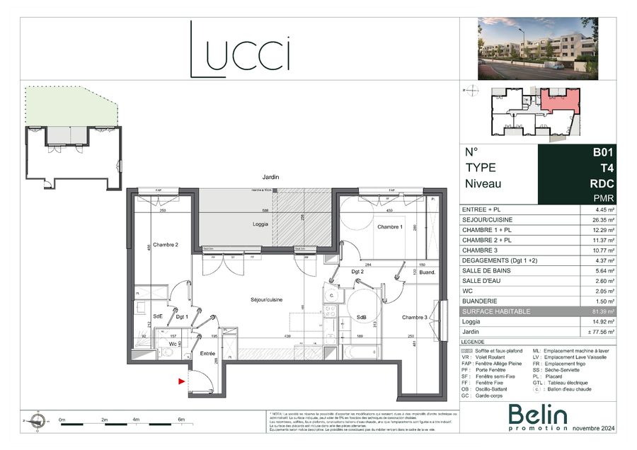 81.39 m² | RDC | 5.160 € € | 420 000 € | 5 % | LOGGIA 14.92 m² Jardin 77.56 m² |