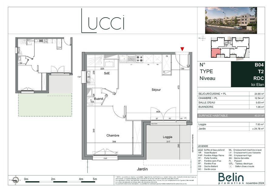 43.31 m² | RDC | 6 465 € € | 280 000 € | 5 % | LOGGIA 7.93 m² Jardin 24.78 m² |