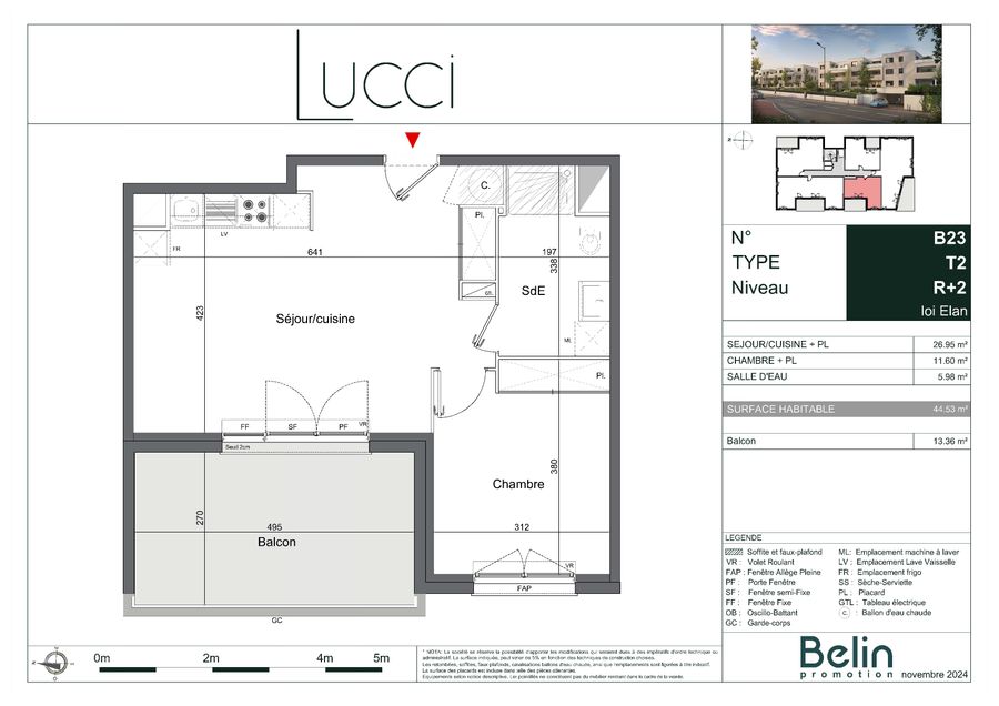 44.53 M² | 1 er | 6 400 € | 285 000 € | 5 % | LOGGIA 13.36 m² | 28 | |||